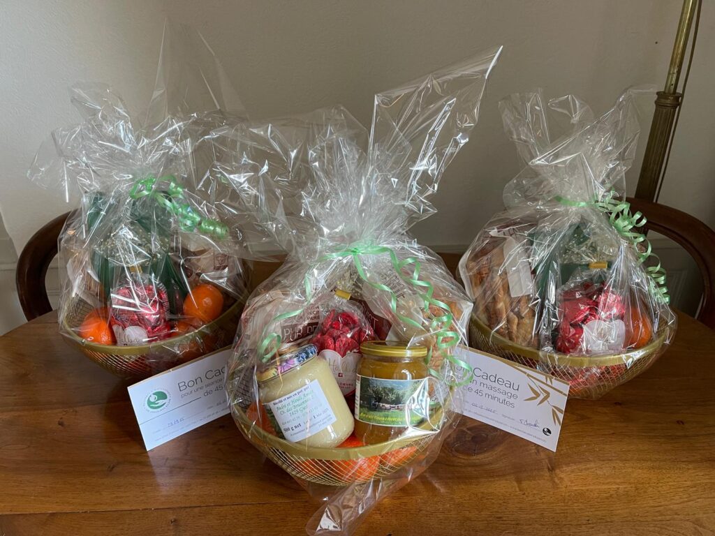 Chacun·e a reçu un magnifique panier garni ainsi qu’un bon chez “Les Chevaliers du Zen” ou deux pots de miel de la famille Amiet.